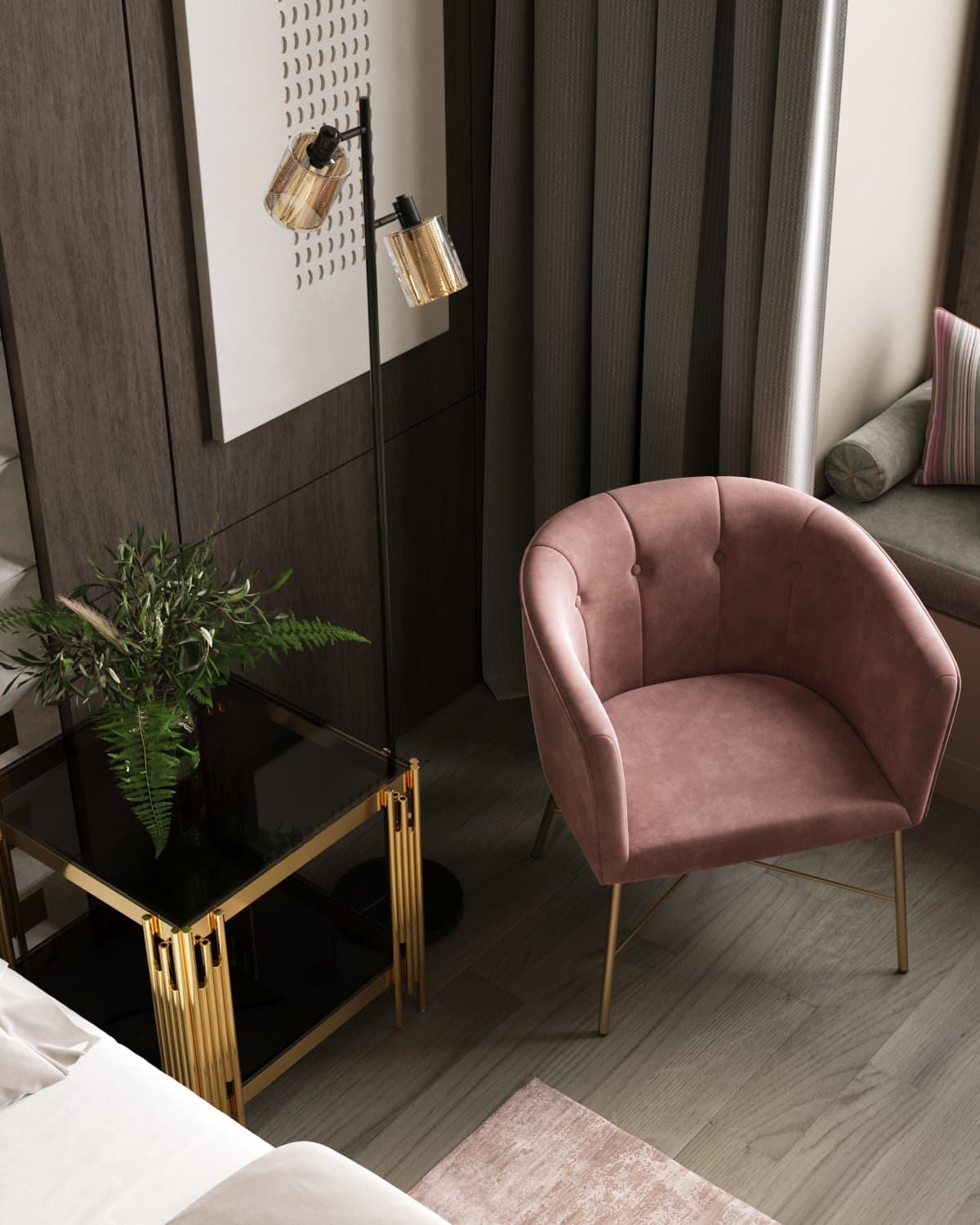 Современное кресло с подлокотниками и металлическими ножками. Обивка выполнена из прочного и износостойкого велюра. Широкая спинка, переходящая в подлокотники, и мягкое сиденье обеспечивает удобную посадку и уют. Украшает кресло декор на внутренней стороне спинки и металлический каркас в золотом цвете.