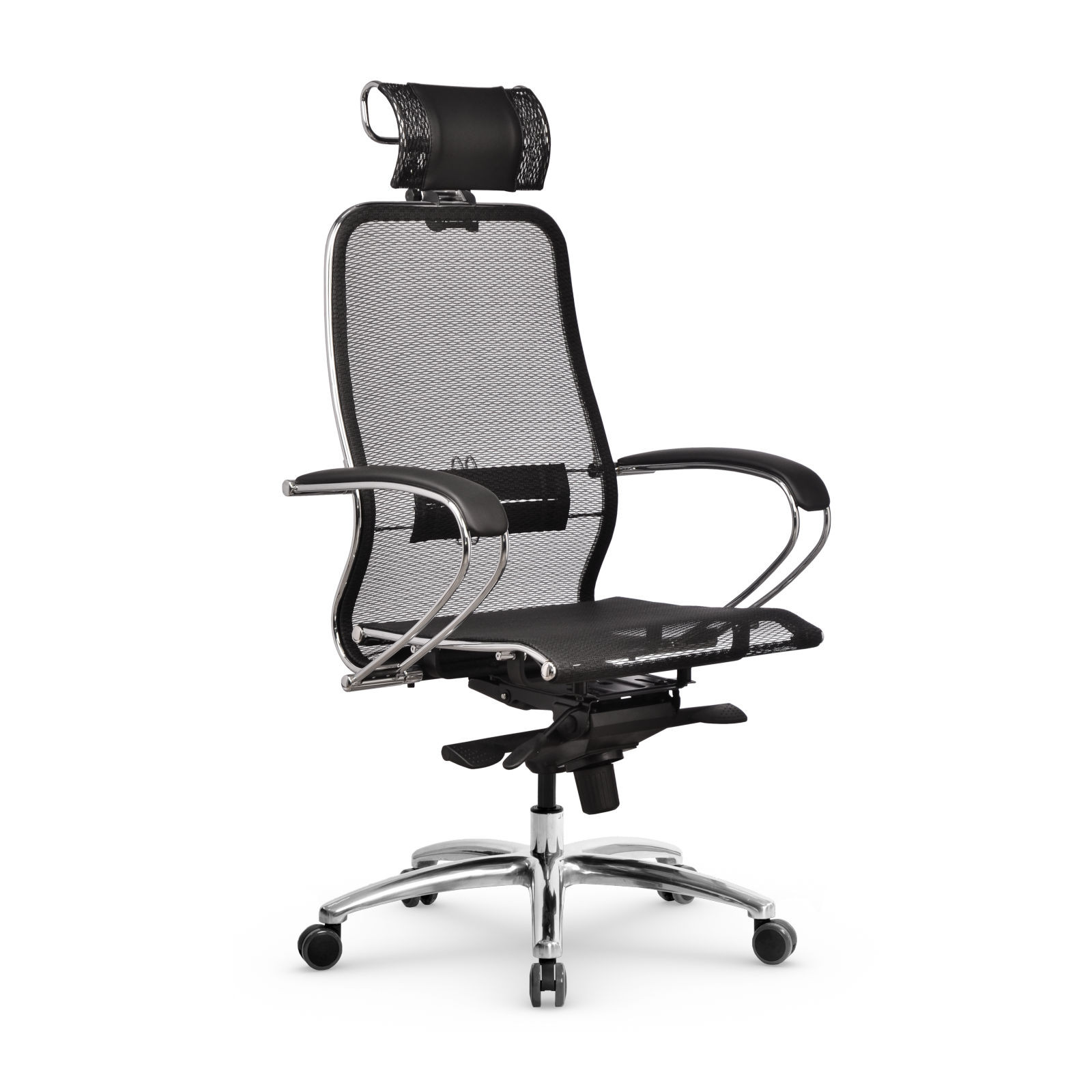 Компьютерное кресло для дома и офиса Высокопрочное зеркальное литое пятилучье с округленным сечением лучей. D - 700 мм. Усиленная конструкция: увеличенная толщина стенок каркаса, усиленные ребра жесткости. Рекомендуемая нагрузка до 150 кг. Идеально подходит ко всем современным стилям интерьера дома и офиса. Раздельное синхронное отклонение спинки и сиденья (Sinhromechanism) позволяет глубоко откинуться в кресле в полулежачее положение с сохранением устойчивости. В результате позвоночник разгружается, мышцы живота расслабляются, восстанавливается естественное кровообращение всех "застойных" зон тела. Особенность механизма заключается в синхронном изменении угла наклона спинки и сиденья в разных соотношениях: при отклонении в кресле угол между спинкой и сиденьем увеличивается, при этом спинка отклоняется на больший угол, чем сиденье. Фиксация в любом положении (Multiblock). Смещенный вперед центр качания позволяет при отклонении назад не отрывать ноги от пола, благодаря чему сосуды под коленями, на бедрах – не пережимаются – кровообращение не затрудняется, отеков не происходит, ощущение легкости в ногах сохраняется! Особенность механизма - функция "слайдер" - регулировка глубины сиденья позволяет настроить правильное положение пользователя независимо от роста и комплекции. Фиксация в 5 положениях. Регулировка жесткости качания. Регулировка высоты газлифта. Производство Россия. Соответствует требованиям европейского стандарта по безопасности эксплуатации и экологичности EN 1335. Литой алюминиевый корпус. Подлокотники стальные классические с мягкими накладками. Обеспечивают удобное положение рук при сидении в кресле, снимают напряжение с шеи, предплечий и запястий. Стальной каркас покрыт зеркальным хромом, повышающим прочность и износостойкость и придающим поверхности красивый блестящий внешний вид. Хромированная деталь на подлокотнике с логотипом SAMURAI является оригинальным элементом серии эргономичных кресел Компании МЕТТА. Сетка, армированная арамидным волокном, повышенная прочность и износостойкость (TS) Изготавливается из полиамидного материала с добавлением арамидных волокон, что делает материал практически вечным Сетчатое переплетение способствует воздухопроницаемости и комфорту в использовании Гарантия: каркас - пожизненно, на обивочный материал MPES - 5 лет, другие обивочные материалы - 2 года, газлифт - 5 лет, остальные элементы конструкции - 3 года.