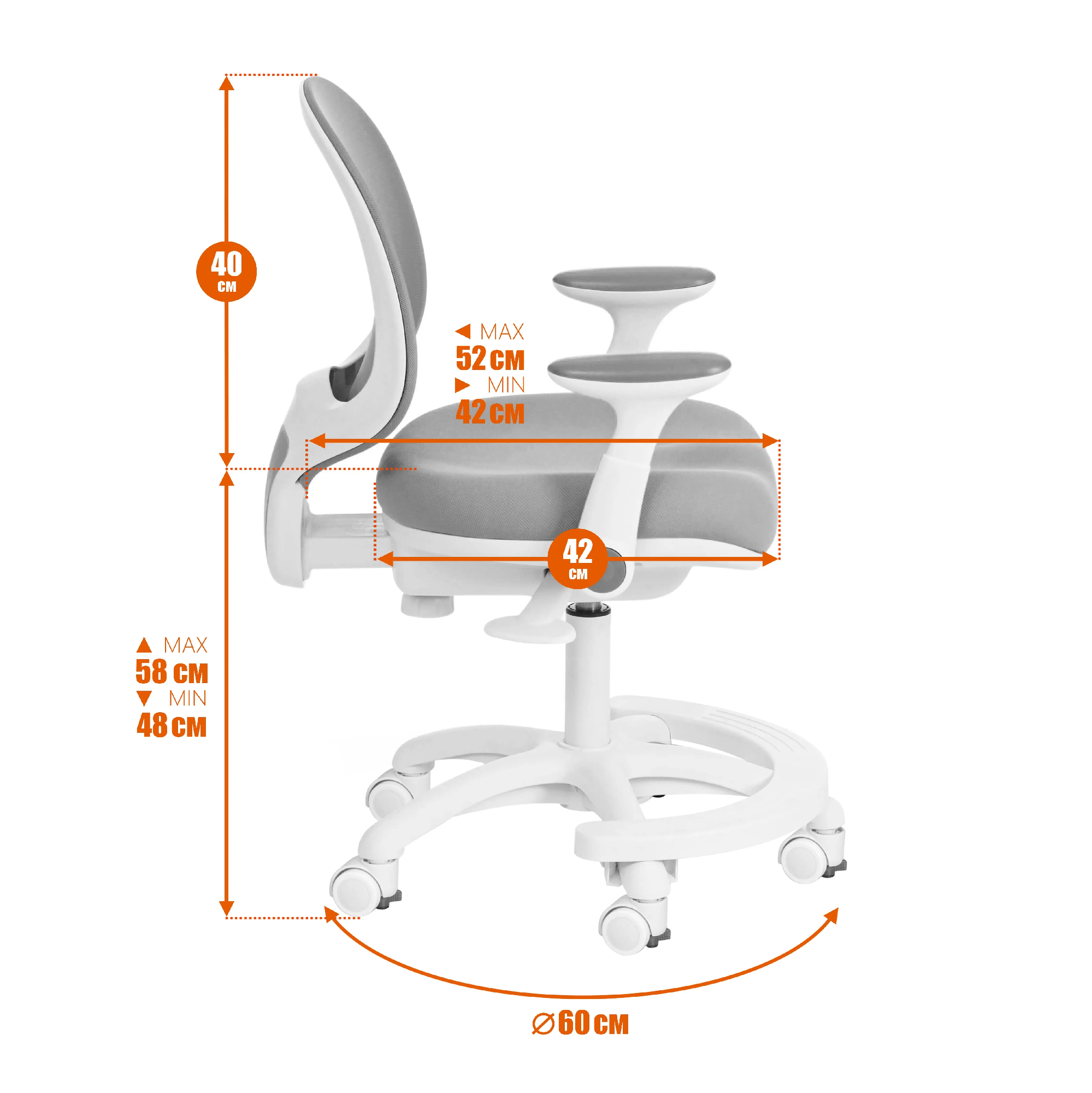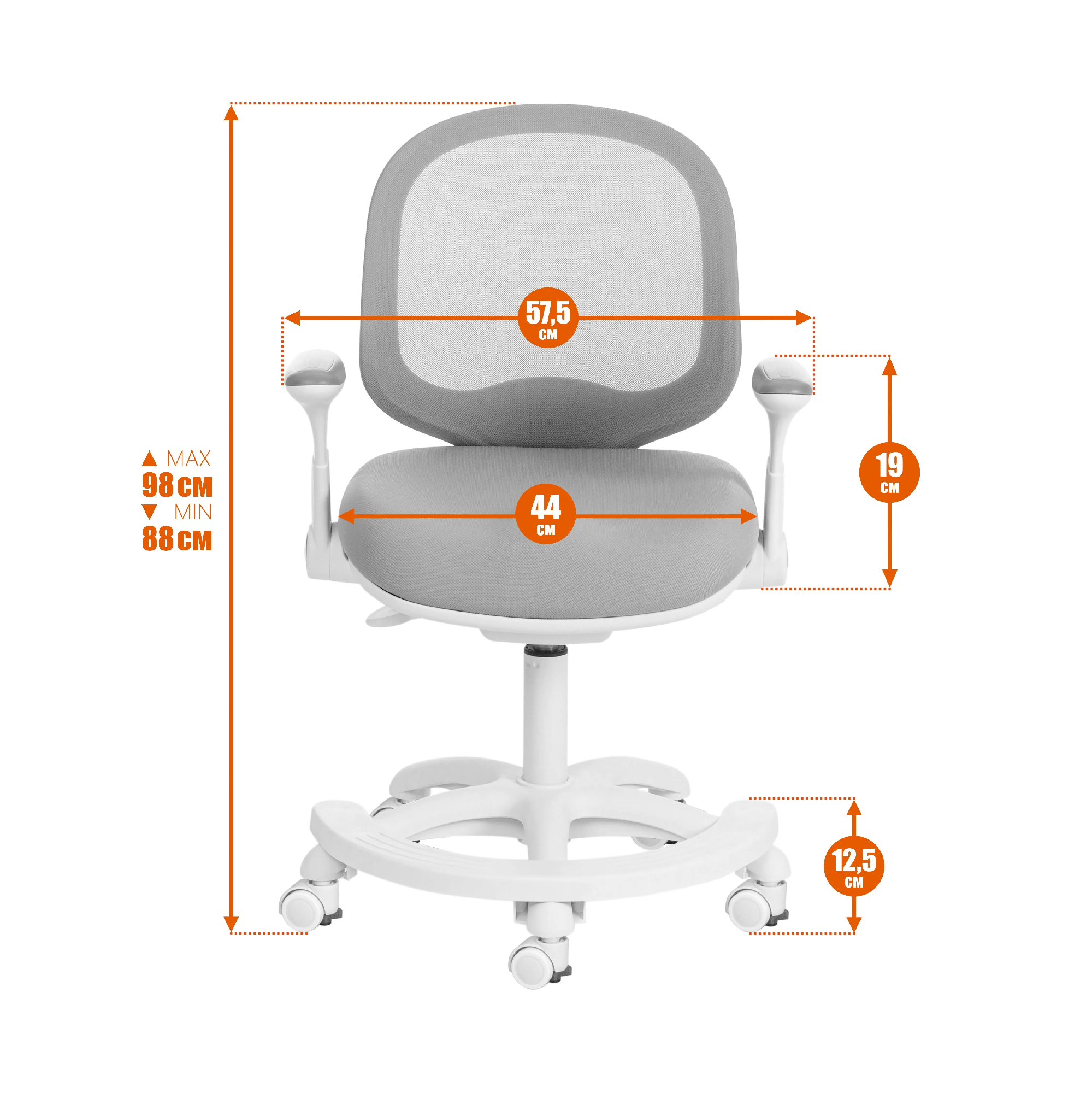 Оригинальный дизайн детского компьютерного кресла RAINBOW/Рейнбоу создаст в вашем доме атмосферу комфорта и уюта. Модель в цвете серый прекрасно впишется в интерьер комнаты школьника. Полипропиленовая крестовина диаметром 600 мм с подставкой под ноги устойчива, прочна и имеет долгий срок службы. Модель оснащена газлифтом 3 класса. Высококачественные ролики с отключаемой функцией блокировки дополнительно прорезинены для предотвращения повреждения напольного покрытия. Такие колесики отлично подходят для использования на паркете и ламинате. Откидные пластиковые подлокотники с декоративными накладками в цвет обивки, механизм регулировки глубины посадки и высоты сиденья помогут принять комфортную позу и снять напряжение с позвоночника. Сетчатая спинка обеспечит вентиляцию, что очень важно в летний период времени. Эргономичное сиденье с мягким наполнителем из высокоэластичного пенополиуретана высокой плотности не деформируется со временем, не накапливает пыль, хорошо пропускает воздух и отводит влагу. Детское мягкое кресло обито износостойкой мебельной тканью, выдерживающей 50 000 циклов на истирание по Мартиндейлу. Такой материал не требует специального ухода, обладает отличными эксплуатационными качествами. Кресло компьютерное выглядит стильно и необычно, станет ярким акцентом в комнате школьника, будет радовать своей долговечностью, красотой и практичностью продолжительное время. Максимальная нагрузка 90 кг. Модель поставляется в разобранном виде. Необходима несложная сборка по прилагаемой инструкции.