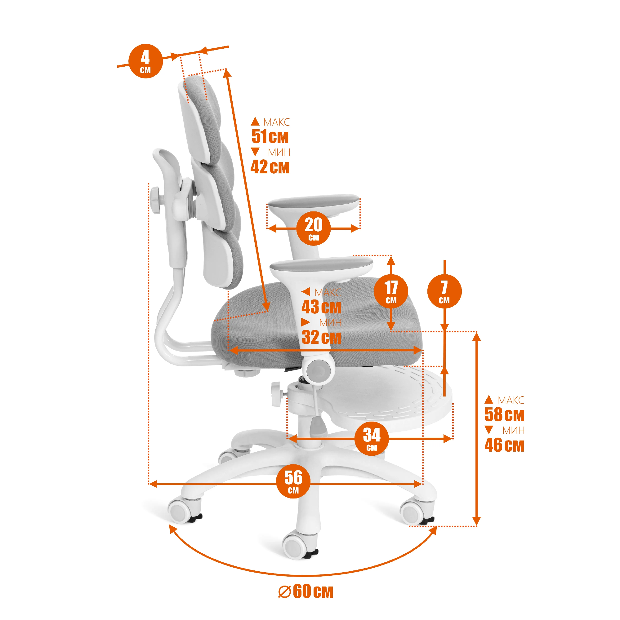 Детское компьютерное кресло Fantasy / Фентэзи — это продуманное сочетание эргономики, надежности и современного дизайна, созданное для комфортной учебы и отдыха. Одним из ключевых преимуществ модели являются премиальные экологически чистые материалы, безопасные для здоровья ребенка. Кресло гармонично дополнит интерьер комнаты школьника и станет стильным акцентом рабочего пространства. Прочная полипропиленовая крестовина диаметром 600 мм обеспечивает устойчивость конструкции. Модель комплектуется регулируемой по высоте подставкой для ног, которую при необходимости можно не устанавливать при сборке. Надежный газлифт 3 класса гарантирует плавную и безопасную регулировку высоты сиденья. Прорезиненные ролики бережно относятся к напольным покрытиям и подходят для паркета и ламината. Переключатель на колесах позволяет выбрать один из двух режимов: свободное перемещение кресла или автоматическая блокировка движения при посадке ребенка. Кресло оснащено расширенными ортопедическими регулировками: изменяется высота сиденья, высота спинки и глубина посадки. Спинка оборудована механизмом динамической поддержки за счет встроенных пружин, что помогает поддерживать спину в правильном положении. Откидные подлокотники регулируются по высоте, позволяют удобно разместиться за столом и при необходимости полностью задвинуть кресло под стол. Сиденье с эргономичным профилем выполнено из высокоэластичного пенополиуретана повышенной плотности. Материал сохраняет форму, не накапливает пыль, хорошо пропускает воздух и эффективно отводит влагу. Анатомическая спинка повторяет естественные изгибы позвоночника, способствуя формированию правильной осанки и снижению нагрузки на поясницу. Обивка изготовлена из прочной мебельной ткани с высокой износостойкостью — 50 000 циклов по Мартиндейлу. Материал прост в уходе и надолго сохраняет аккуратный внешний вид. Fantasy / Фентэзи — функциональное, долговечное и стильное кресло, рассчитанное на нагрузку до 90 кг. Поставляется в разобранном виде и легко собирается по прилагаемой инструкции.