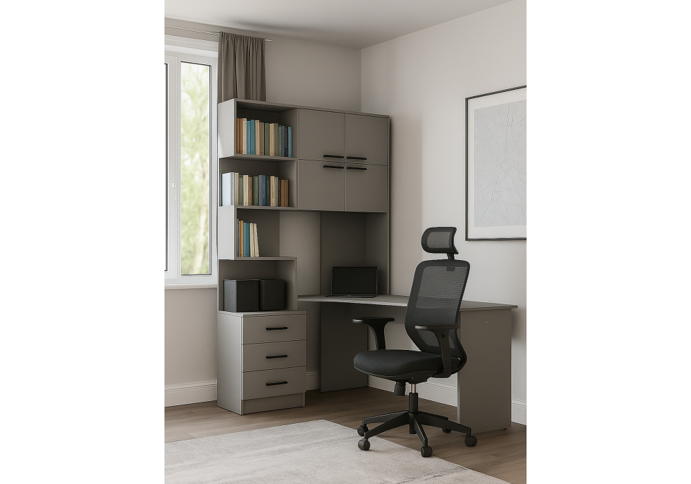 —Компьютерный стол Эльброни правый шиншилла серая