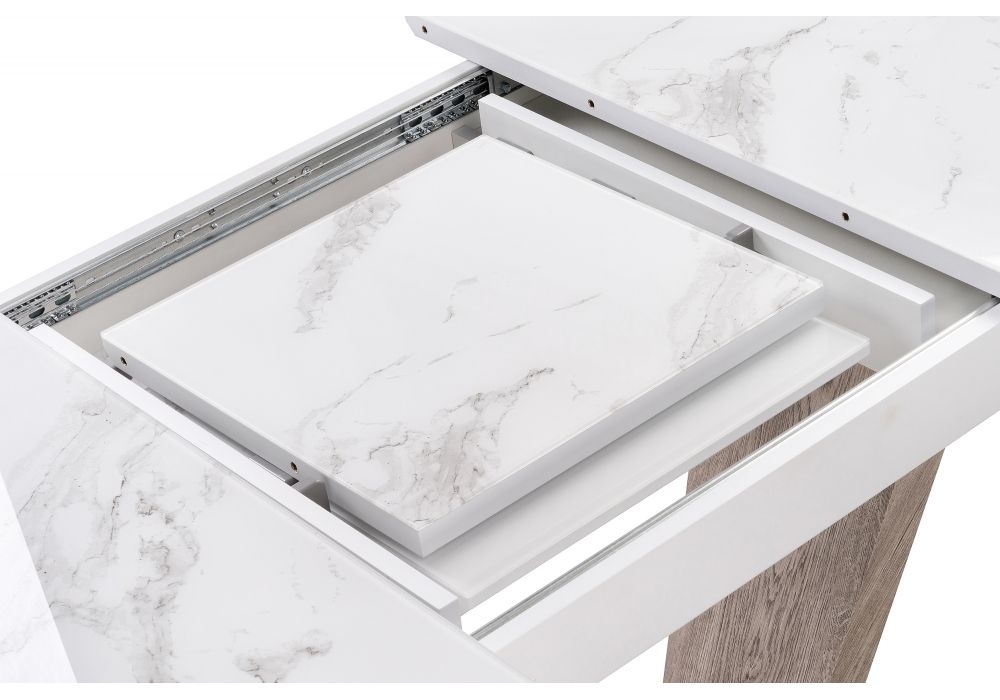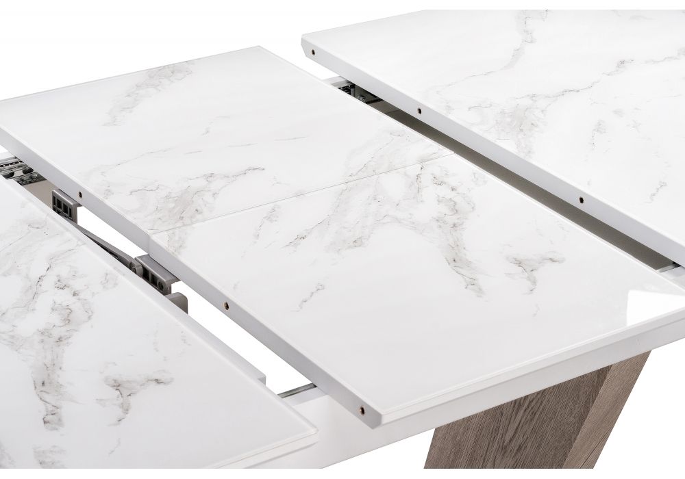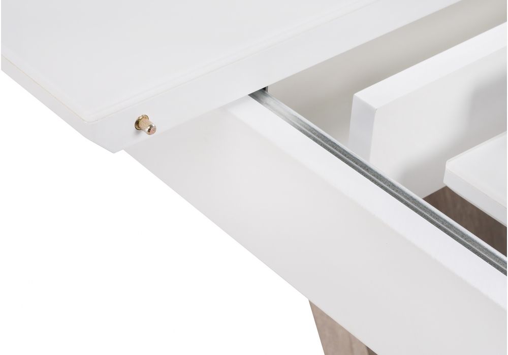 Стол Петир woodville представляет собой стильное и удобное решение для вашего интерьера. Товар доступен в различных цветовых вариантах, включая белый, что позволяет выбрать оптимальные решение под ваш стиль и предпочтения. Материал изделия - металл и дерево и стекло, обеспечивает прочность и долговечность конструкции, при этом сохраняя легкость и изящество дизайна. Прямоугольная столешница, раскладной, тип основания - прямоугольное основание.