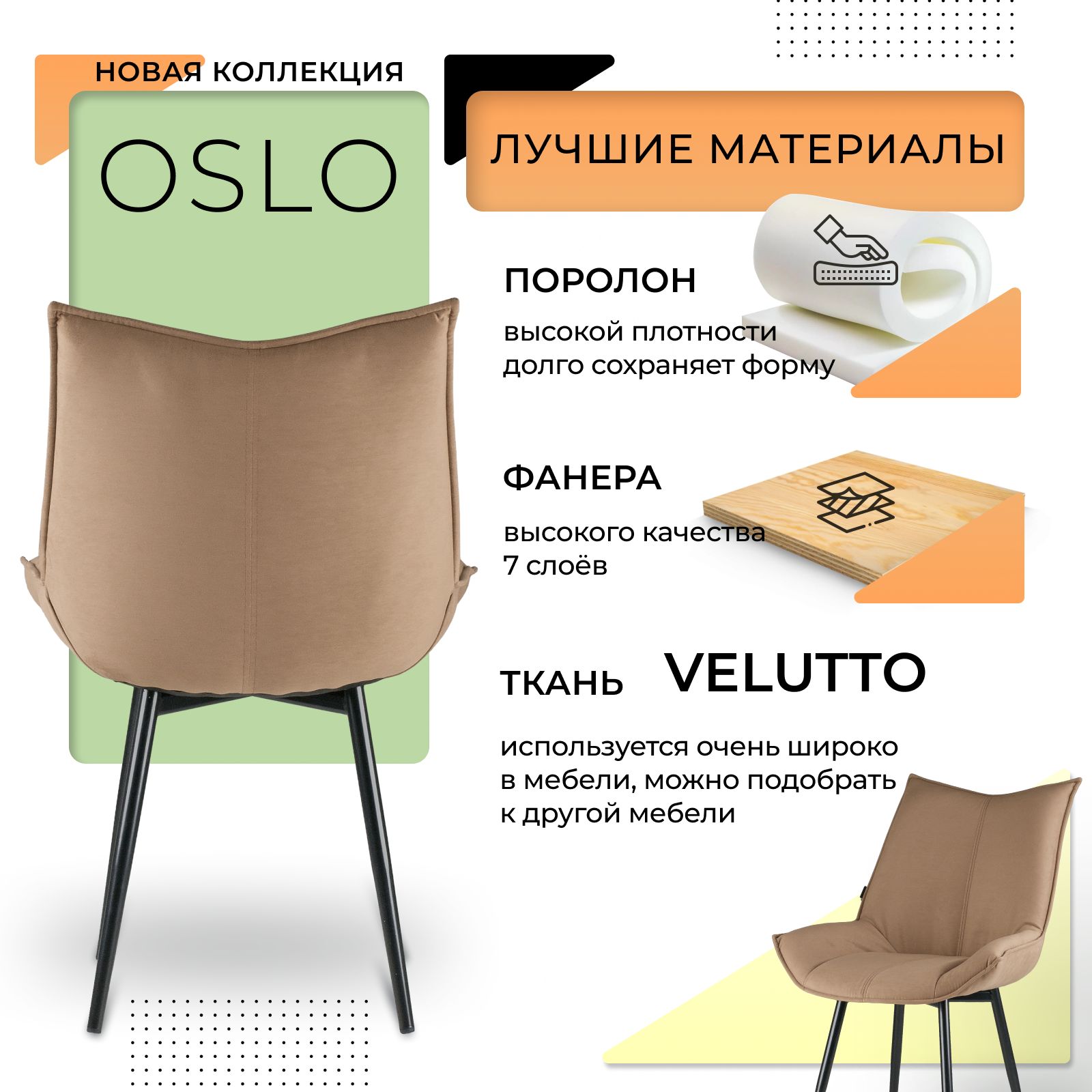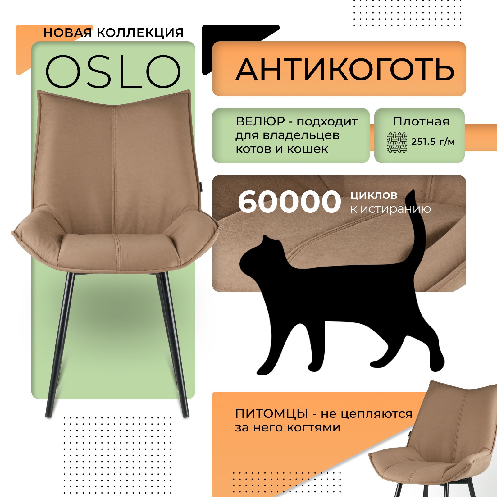 • Дизайнерские стулья ОСЛО из велюра Velutto (антикоготь);