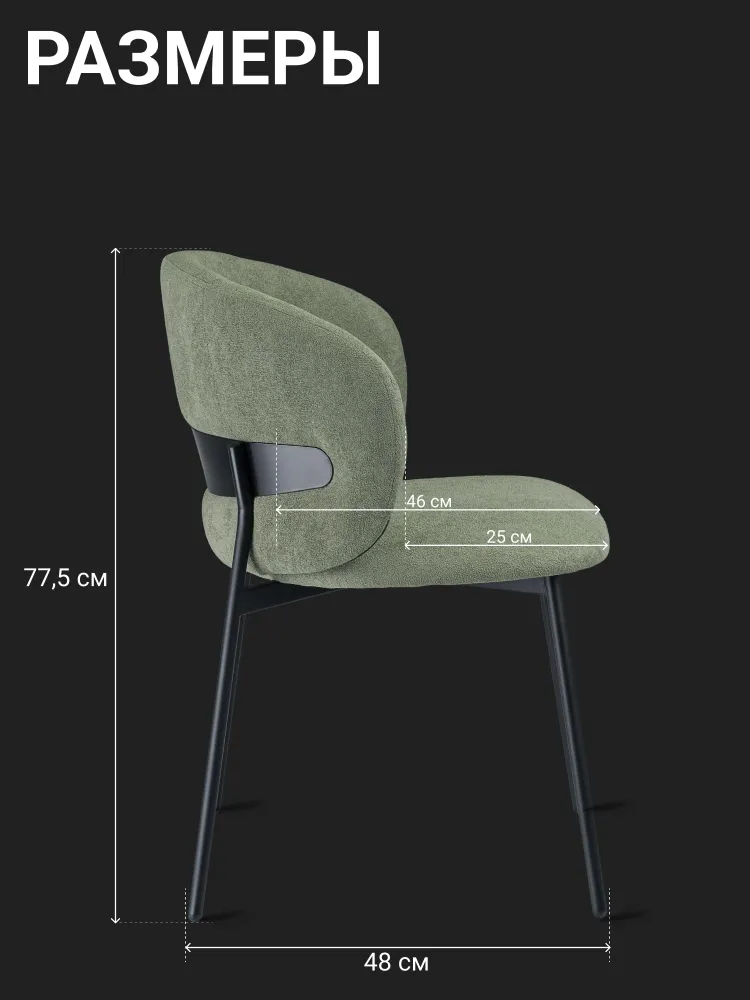 Плавные линии и оригинальная форма спинки добавляют выразительности и визуальной лёгкости пространству. Просторное сиденье и эргономичная посадка обеспечивают комфорт даже при длительных обедах или встречах.