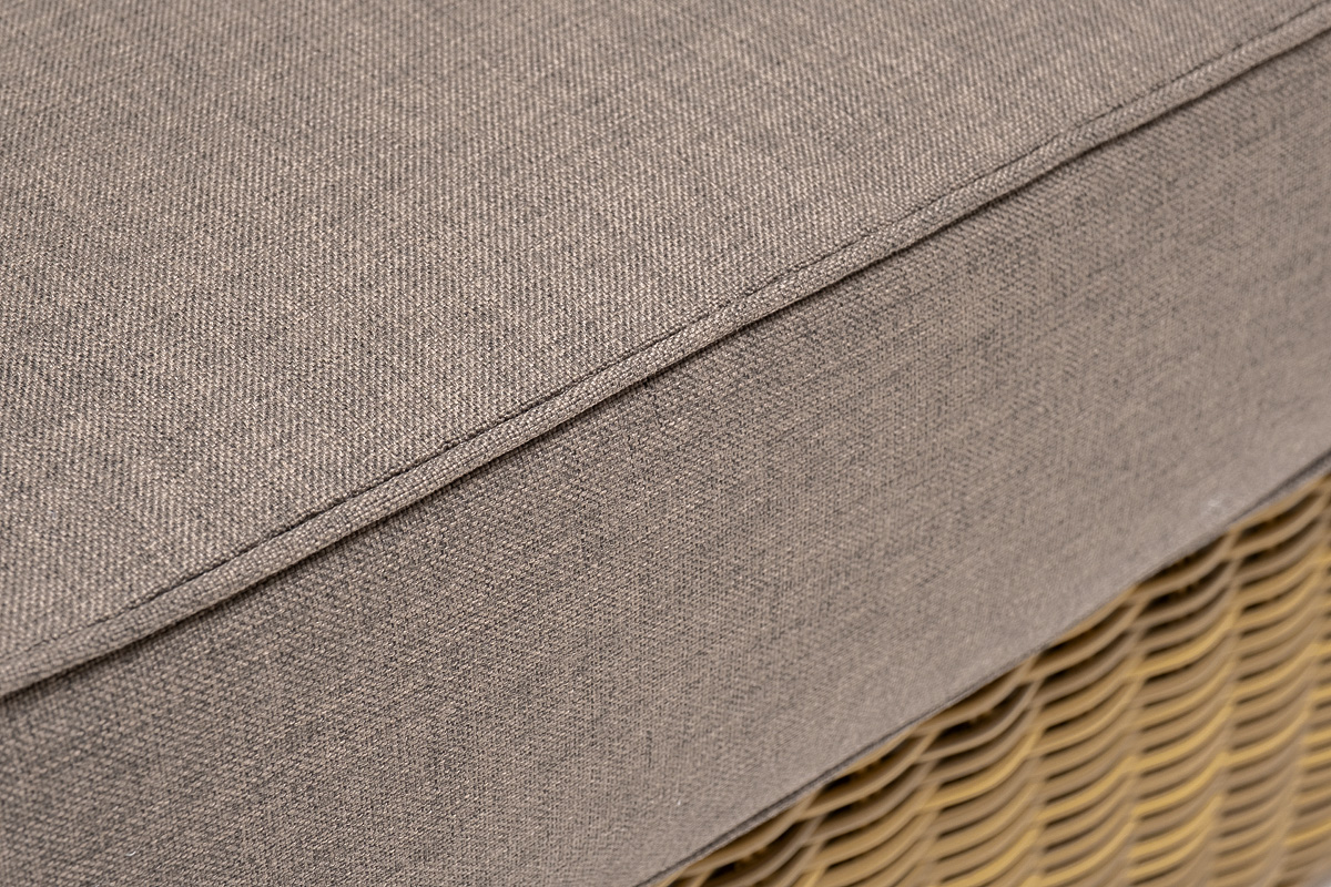 В комплектацию входят мягкие подушки для комфортного расположения. Чехлы съёмные серо-коричневого цвета из высококлассного полиэстера с плотностью 230гр/м2. Габариты модели составляют 1000×900×775 мм, толщина подушки: 150 мм, вес: 23 кг.